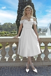 VESTIDO CORPETE TULE OMBRO A OMBRO BRANCO MIDI - comprar online VESTIDO CORPETE TULE OMBRO A OMBRO BRANCO MIDI - comprar online